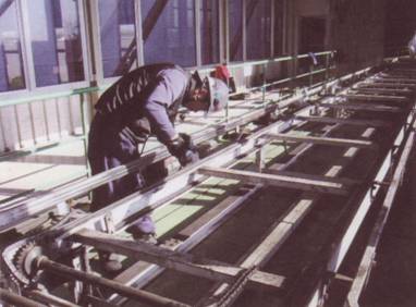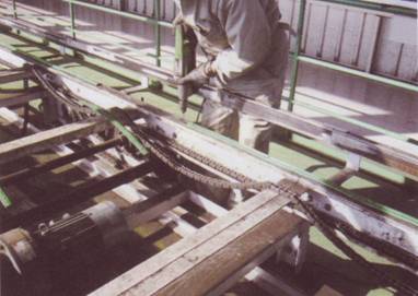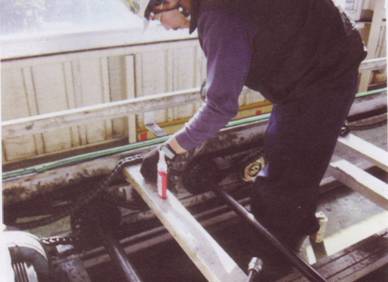 チェーンコンベアのチェーン及びレール交換