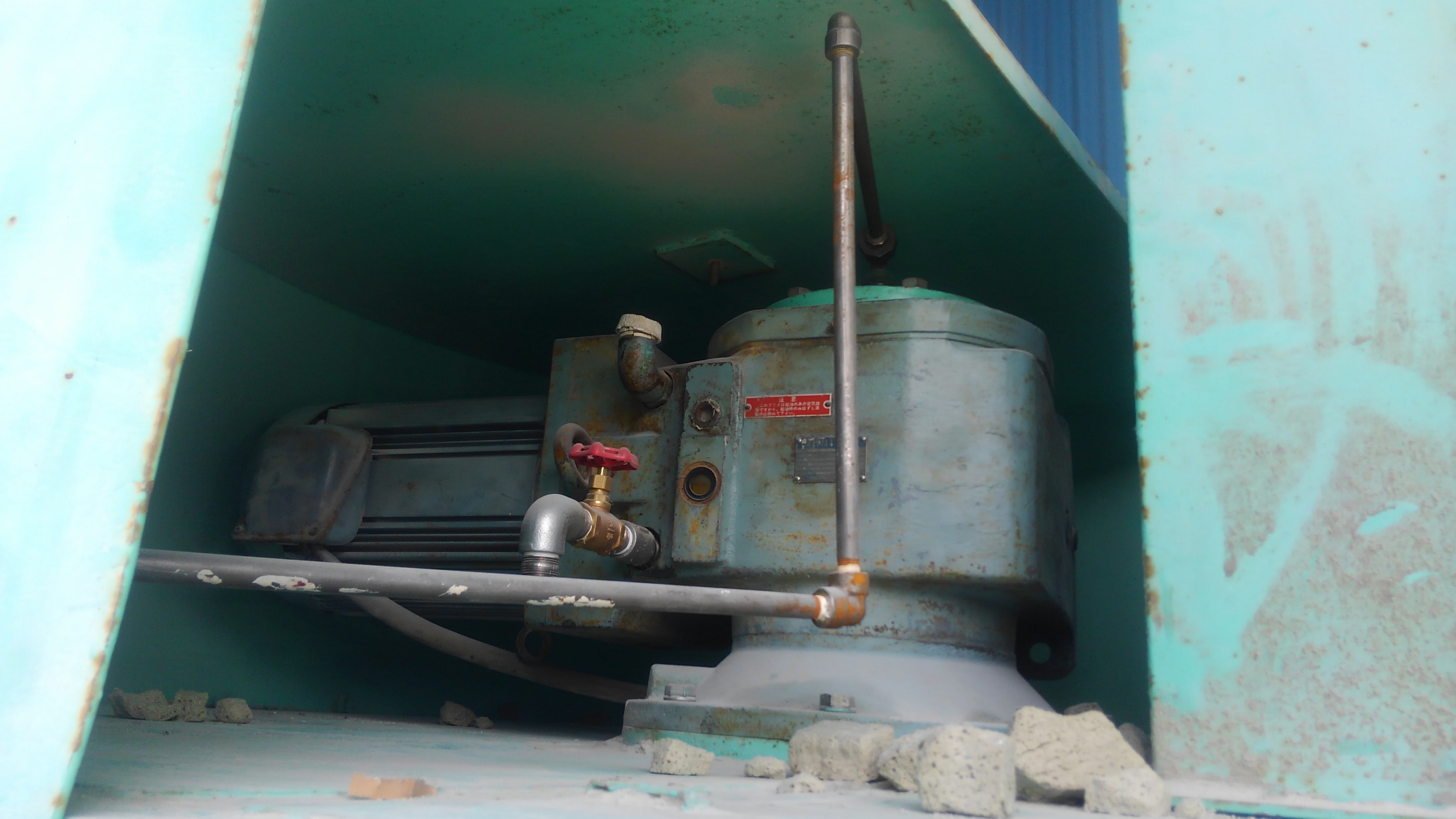 清掃の後に復元し、新たにオイル交換用のドレンパイプ設置、及び油圧配管の引き直し