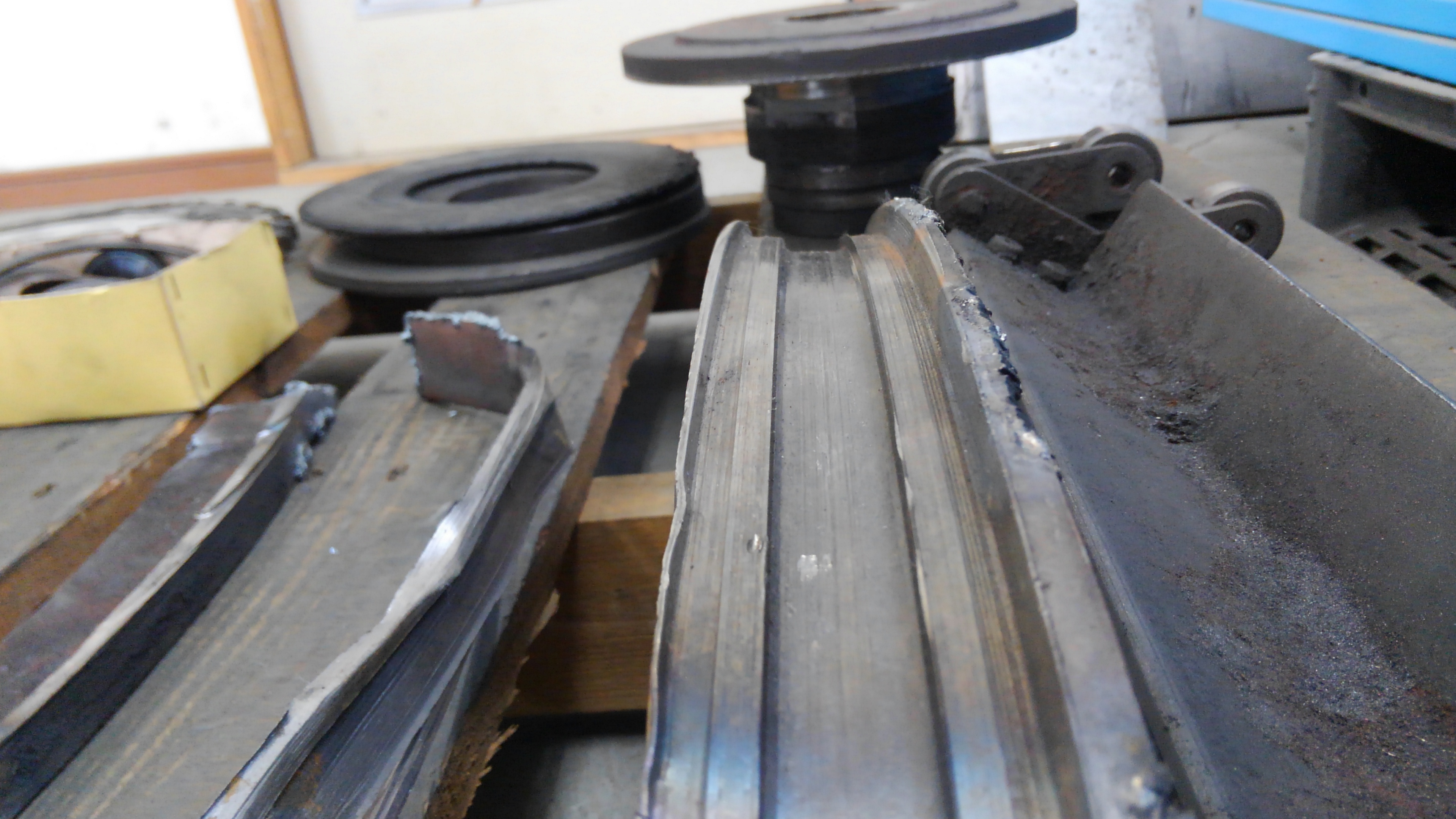 チェーンの磨耗により削れ、破損・剥落してしまった為にガスとサンダーにて取り外したレール部分